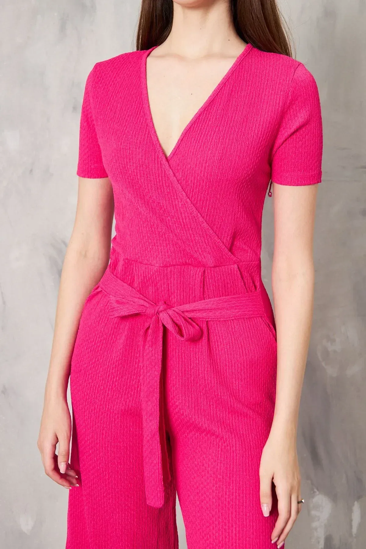 DOPPELREIHIGER JUMPSUIT AUS STOFF MIT KRAGEN UND GÜRTEL