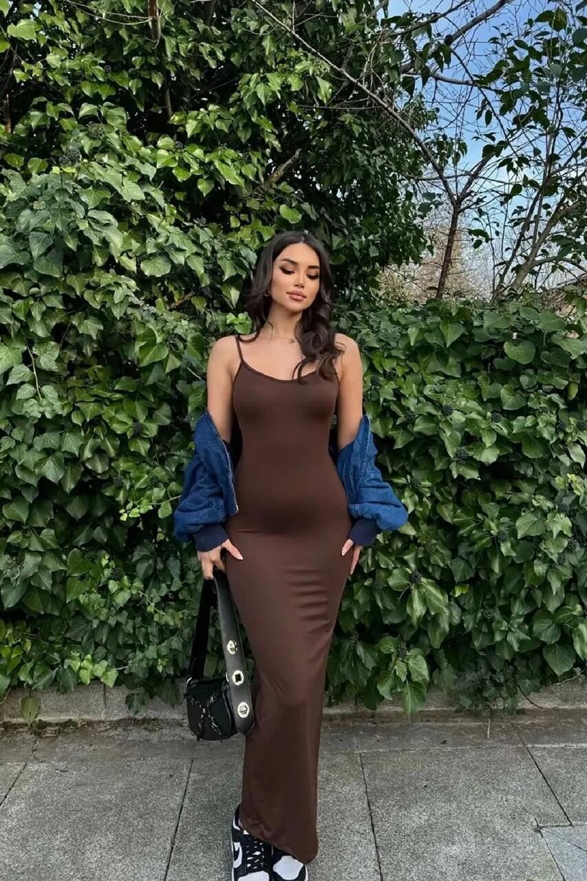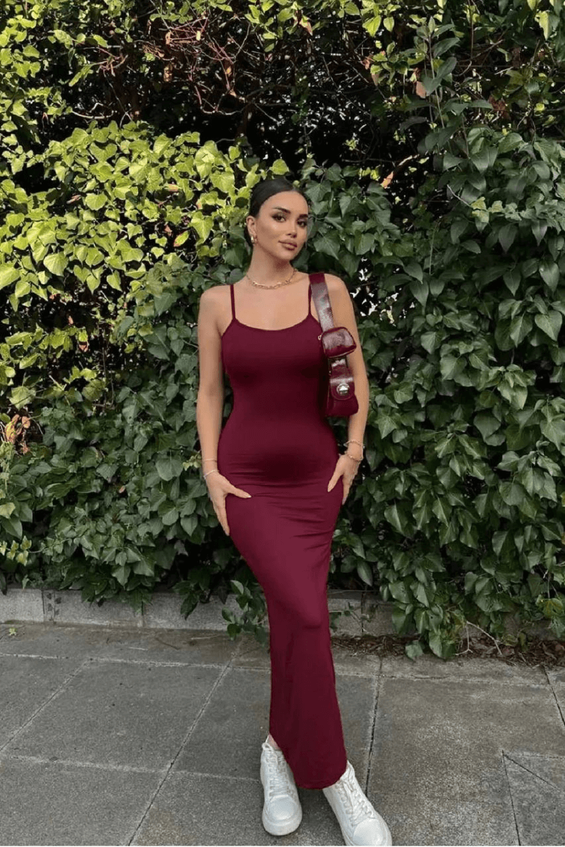 - Dieses Kleid bietet mit seinem rückenfreien Schnitt einen femininen Look und unterstreicht Eleganz und Chic.; - Dank seines Stoffes aus 90 % Polyester und 10 % Lycra bietet es mit seiner flexiblen Struktur hohen Tragekomfort.; - Sein ungefüttertes Design bietet Bewegungsfreiheit, während seine praktische Handhabung einen praktischen Nutzen verspricht.; - Es spart Ihnen Zeit mit seinen pflegeleichten Eigenschaften, die eine Maschinenwäsche bei 30 Grad ermöglichen.; - Der Taucher-/Scuba-Stofftyp erhöht die Haltbarkeit und ist ideal für den Langzeitgebrauch.; - Es passt sich mit seiner ungefütterten Silhouette und der gürtellosen Struktur perfekt Ihren Körperlinien an.; - Es wird als einziges Stück angeboten, da es nur einen Verpackungsinhalt hat; es lässt sich leicht in Ihre Garderobe integrieren, ohne dass Sie zusätzliche Gegenstände mitnehmen müssen.; - Während die Schlichtheit der Basic-Kollektion zu jeder Umgebung passt, ist sie eines der zeitlosen Stücke, die Sie zu jeder Jahreszeit tragen können.; - Mit dem Rundhalsausschnitt und dem schlichten Muster können Sie einen einfachen, aber beeindruckenden Stil kreieren.; - Es bietet ein Qualitätserlebnis, indem es seine Form dank des Polyestermischmaterials bewahrt.; - Sie fallen mit Designdetails auf, die Ihnen helfen, auch in trendigen Umgebungen stilvoll auszusehen.; - Während die Ärmellänge mit Riemchen ein Gefühl von Kühle und Leichtigkeit für die Sommermonate vermittelt, zeichnet die schmale Passform eine moderne Silhouette.