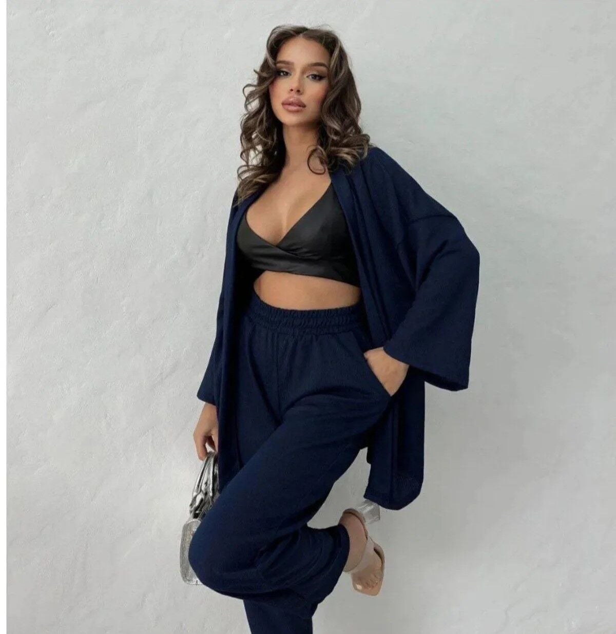 - Un ensemble kimono oversize haut et bas à la coupe décontractée, idéal au quotidien. - Les manches chauve-souris offrent une grande liberté de mouvement et un look élégant. - Une option confortable, idéale même pendant les transitions saisonnières grâce à ses manches longues. - La taille élastiquée offre un ajustement confortable et un confort optimal tout au long de la journée. - Sa structure légère et respirante est réalisée en polyamide mélangé. - Son style intemporel s'accorde avec toutes les tenues. - Ses détails élastiqués facilitent son enfilage et son retrait, tout en offrant une utilisation pratique. - Son tissu d'épaisseur moyenne offre un confort optimal, adapté aux conditions saisonnières. - Son design moderne et jeune vous offre un look tendance. - Son col de veste crée une différence tout en conservant la simplicité de la collection basique. - Des pièces qui vous donneront un look accrocheur et élégant dans des environnements tendance. - Ses jambes élastiquées s'adaptent aussi bien aux styles sportifs que décontractés. - Sa silhouette épouse parfaitement les lignes de votre corps grâce à la taille S. - Conçu comme un duo kimono-pantalon, il vous permet d'obtenir un look complet. - Avec son design non doublé, il séduit les adeptes du minimalisme tout en mettant en valeur sa légèreté. - Sa structure sans poche séduit les amateurs de détails minimalistes. - En suivant les instructions de lavage, vous pourrez le conserver comme au premier jour pendant longtemps. - Il vous permet de créer des combinaisons simples mais efficaces en adoptant un concept de design uni. - Fabriqué à partir de matériaux de haute qualité avec une durabilité accrue grâce à 1 % de MB. - Il est idéal pour celles qui aiment le minimalisme avec sa structure sans ceinture, réduisant le besoin d'accessoires supplémentaires. - Son tissage en tulle ajoute une touche d'élégance et de féminité sans sacrifier la flexibilité. - Sa structure flexible épouse les formes du corps et permet des mouvements confortables. - Le contenu du pack de 2 fournit toutes les pièces nécessaires pour le haut et le bas en une seule fois. - Des processus de production respectueux de l'environnement sont utilisés pour ceux qui apprécient les détails durables. - Ce costume, qui reflète la noblesse du noir en plus de son design non imprimé, gagnera une place indispensable dans votre garde-robe.