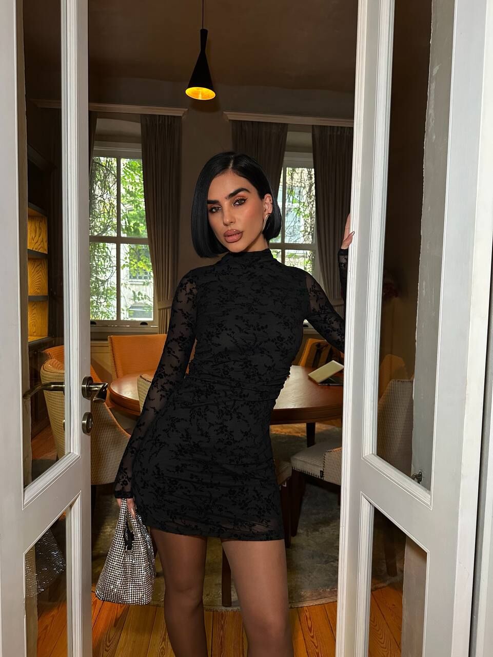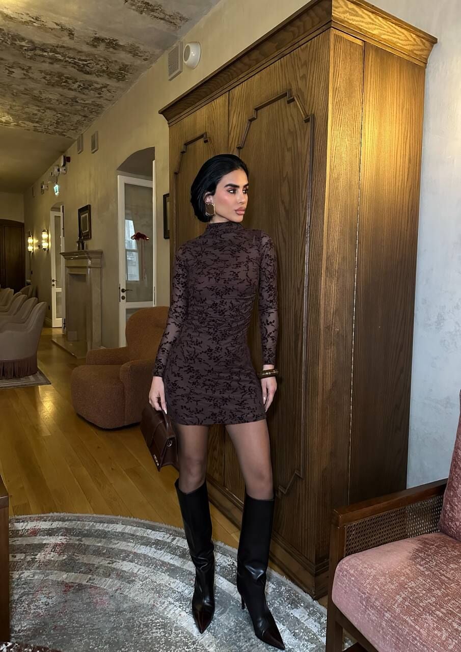 Zarif çiçek desenleri ve ince transparan kumaşıyla dikkat çeken bu mini elbise, şıklığı ve rahatlığı bir arada sunar. Flok baskılı detaylar, tasarıma modern bir dokunuş katarken, uzun kollar sezon geçişlerinde kullanım için idealdir. Özel günlerde özgün tarzınızı tamamlar.
