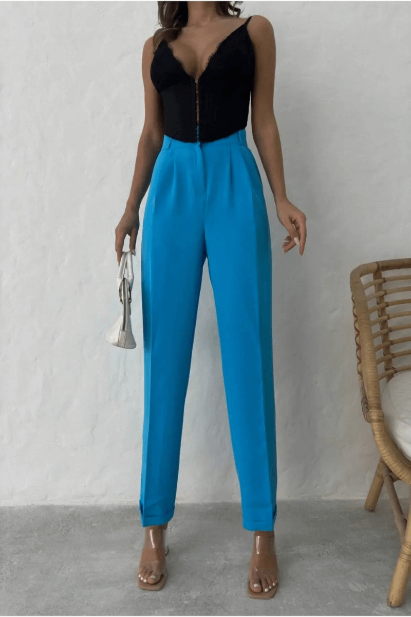 - Confortable grâce à sa taille haute. - Durable grâce à son tissu en polyester mélangé. - Élégant et intemporel grâce à sa couleur bleue. - Pratique au quotidien grâce à sa structure infroissable. - Moderne et minimaliste grâce à son design sans ceinture. - Facile à associer grâce à son motif droit, il s'adapte à tous les environnements. - Ses jambes doubles vous permettent de bouger confortablement tout en créant une silhouette tendance. - Entretien facile : lavage en machine, pour un confort optimal. - Idéal pour un usage quotidien, idéal pour un style décontracté. - Taille S adaptée à différentes morphologies. - Sa texture d'épaisseur moyenne est idéale pour les transitions saisonnières. Entretien facile : lavage en machine, pour un confort optimal. - Sa double poche est pratique et offre des rangements pratiques pour vos petits objets. - Simple et élégant grâce à son motif non imprimé. - Sa structure s'adapte confortablement grâce à sa silhouette régulière. - Il vous offre un style moderne et dynamique avec ses détails plissés. - Faisant partie de la collection Basic, il devient un élément fondamental de votre garde-robe. - Avec sa structure non doublée, il procure une sensation de légèreté et d'espace tout en soutenant une esthétique minimaliste.