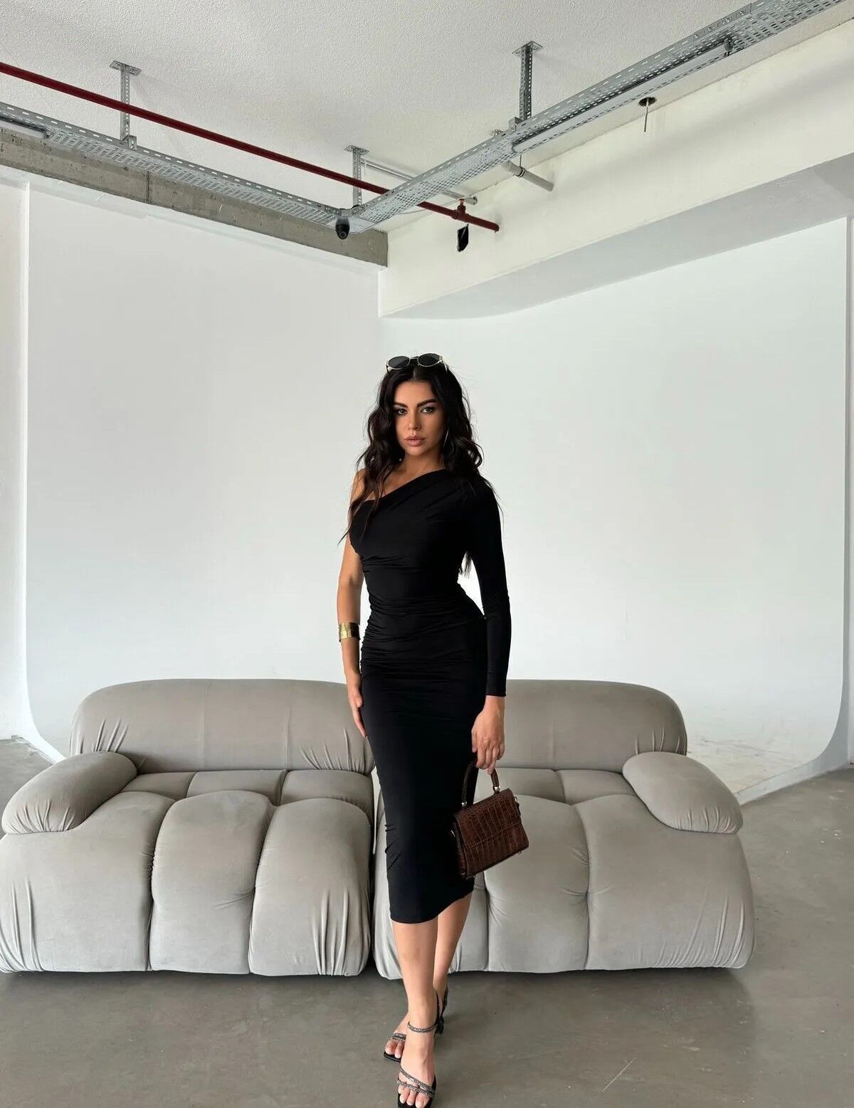 - Il offre un look accrocheur avec son design élégant, idéal pour les environnements élégants et nocturnes; - Il allie durabilité et confort grâce à sa structure en tissu tissé; - Il peut être facilement nettoyé conformément aux instructions de lavage de type 1, garantissant ainsi que votre robe reste comme au premier jour; - Il a un style moderne et tendance qui reflète l'esprit dynamique de la collection Young; - Il offre confort et élégance avec sa structure non révélatrice, vous vous sentirez en confiance lors de vos journées spéciales; - Il offre un toucher doux et une sensation de luxe avec sa matière satinée; - Tout en créant une silhouette noble et élégante grâce à sa longue longueur, le type de tissage sable offre du confort avec sa légèreté; - Il a un large éventail d'utilisateurs avec son design qui plaît à tous les groupes d'âge.; - Le détail de la manche unique ajoute un air moderne et féminin, tandis que le décolleté sans bretelles souligne avec style la zone du décolleté.; - La coupe slim épouse parfaitement les lignes de votre corps, créant une élégante;