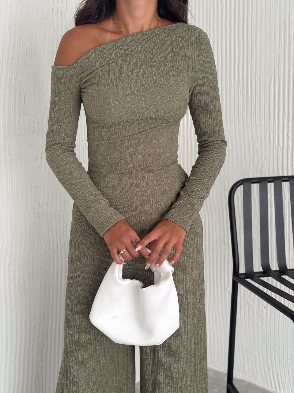 Pantolonun şık kesimiyle tamamlanan takım, zarif bir siluet ortaya çıkarırken kolay kombinlenebilir yapısıyla da öne çıkar. Topuklu ayakkabılar ve minimal aksesuarlarla kombinlendiğinde davetlerde şıklığınızı en üst seviyeye taşır. Kadın Düşük Omuz Drape Detay Bürümcük Bluz Pantolon Takımı, gardırobunuza modern, şık ve zamansız bir dokunuş katmak isteyenler için vazgeçilmez bir parçadır.