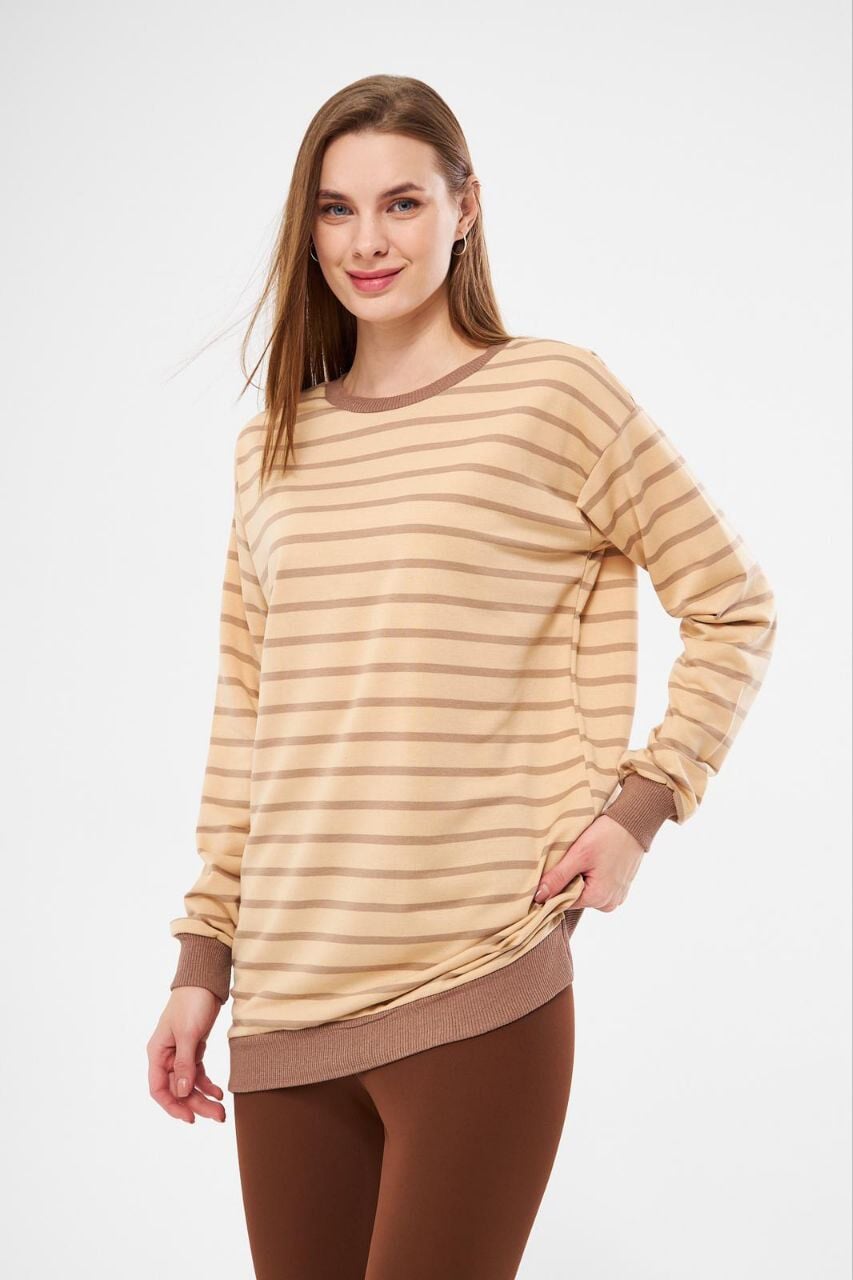 Kadın İki İplikli Tesettür Tunik Çizgili Sweatshirt