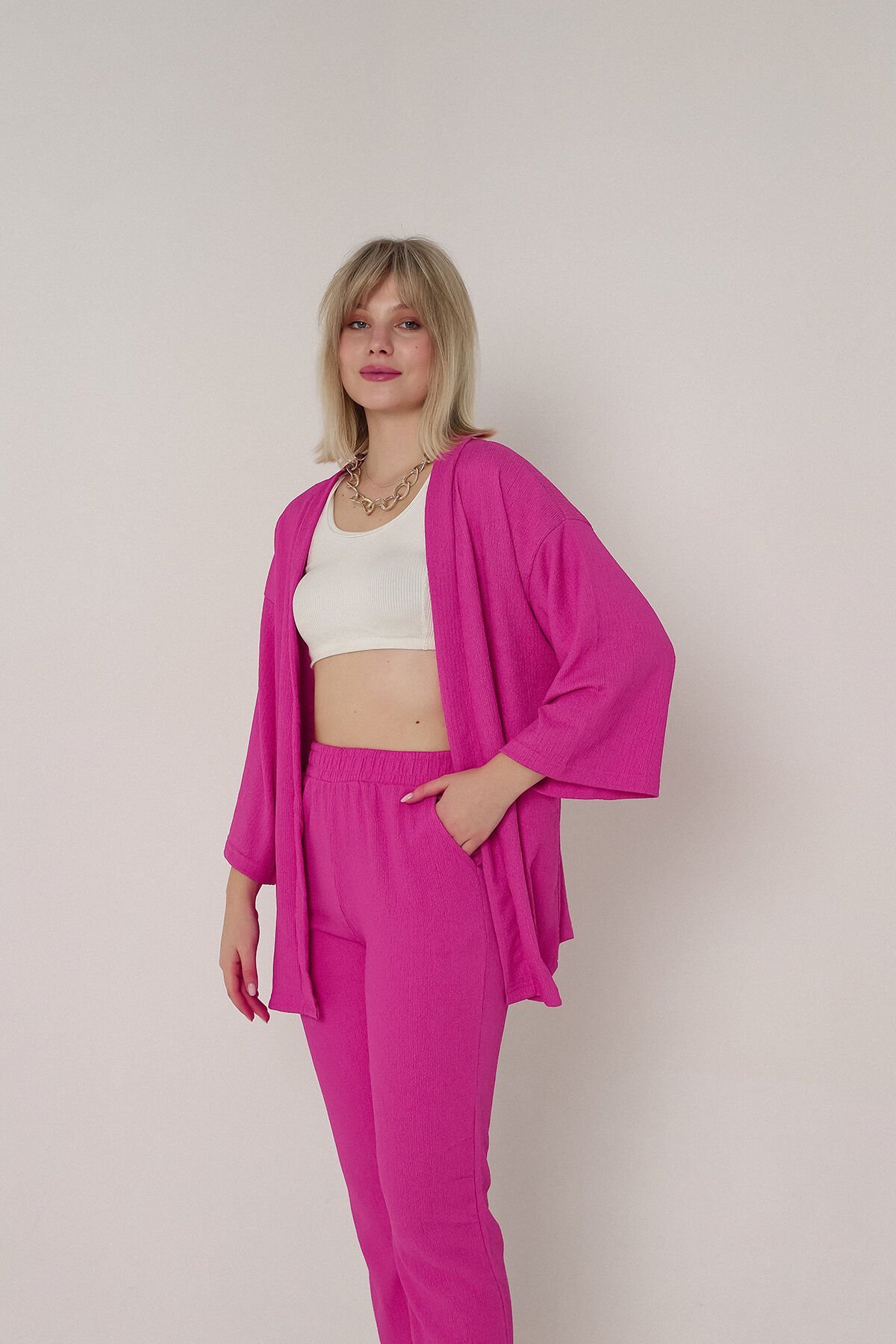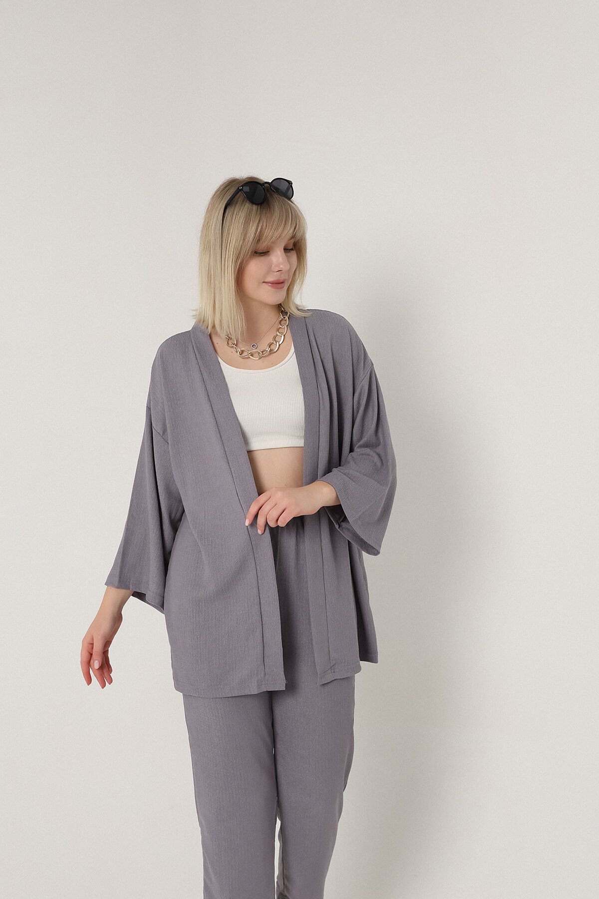 Trend ortamlarda stil sahibi bir duruş sergilemenizi sağlayan Kadın Kimono Bürümcük Alt Üst Takım, günlük hayatta ve özel anlarda modern, genç ve şık kombinler yaratmak isteyen kadınların gardırobunda mutlaka bulunması gereken bir parçadır.